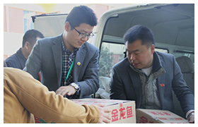 員工代表搬運捐贈物資 |