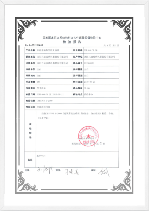 目前,國內有兩家機構可以進行防火玻璃檢測——國家固定滅火系統和耐火構件質量監督檢驗中心、國家防火建筑材料質量監督檢驗中心,大量使用蘭迪防火玻璃鋼化設備的客戶已經通過以上權威檢驗中心的型式檢驗,均燒檢合格,并獲得型式檢驗報告;產品種類包括普通高強度防火玻璃以及高硼硅4.0等多種類型的特種防火玻璃。
