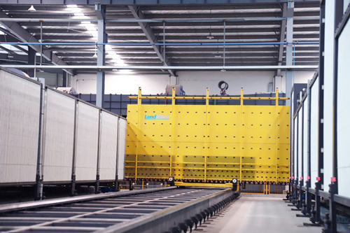 行,但只適合于大批量訂單,且訂單規格單一的生產模式。如果訂單規格種類多,則有理片系統,生產成本更低。根據蘭迪機器多年的行業經驗,沒有理片系統情況下,每次只能加工單一訂單產品,切裁率為82% - 88%;有理片系統情況下,多種訂單規格混合切割的優化切裁率為 88% - 95%, 可節省大量原片成本。除此之外,理片系統還可以提高產線的生產效率, 比如磨邊機等設備不需要頻繁調整。所以,到底需不需要理片系統,要根據工廠的產品結構類型和產能需求來最終規劃。