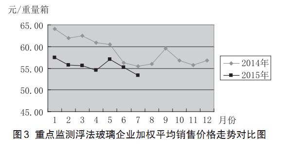 依據中國建筑玻璃與工業玻璃協會對全國重點監測浮法玻璃企業月快報數據綜合統計顯示:7 月產量、銷量同比都有所減少;7 月期末庫存與去年同期相比有所減少,與上月相比有所增加;7 月綜合加權平均價格,環比下降1.83 元 / 重量箱,同比下降 2.89元 / 重量箱。
